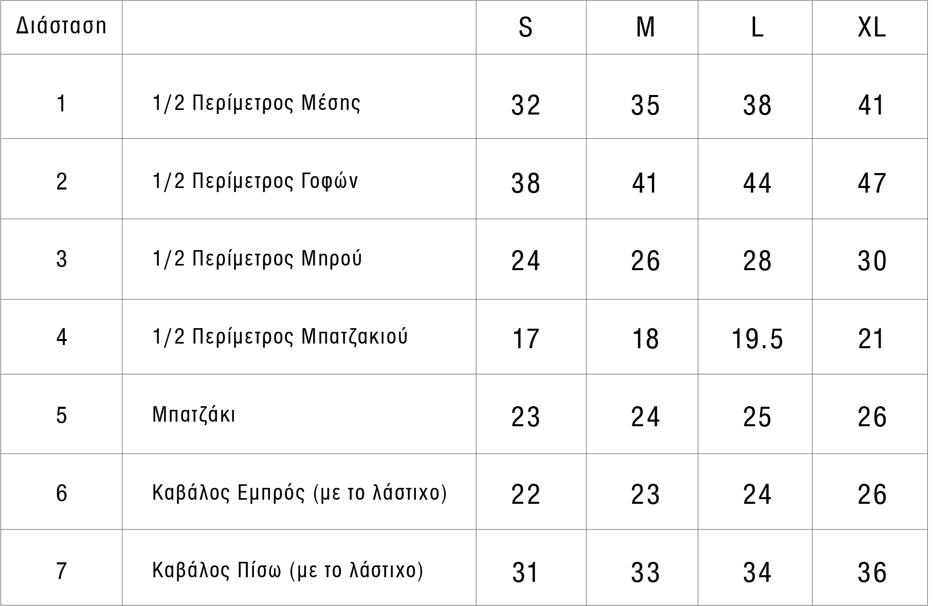 Επειδή κάθε σώμα είναι μοναδικό και κάθε brand μπορεί να έχει μικρές διαφορές στα πρότυπα μεγεθολόγησης, σας προτείνουμε να συμβουλευτείτε προσεκτικά τις παρακάτω πληροφορίες πριν την ολοκλήρωση της παραγγελίας σας.