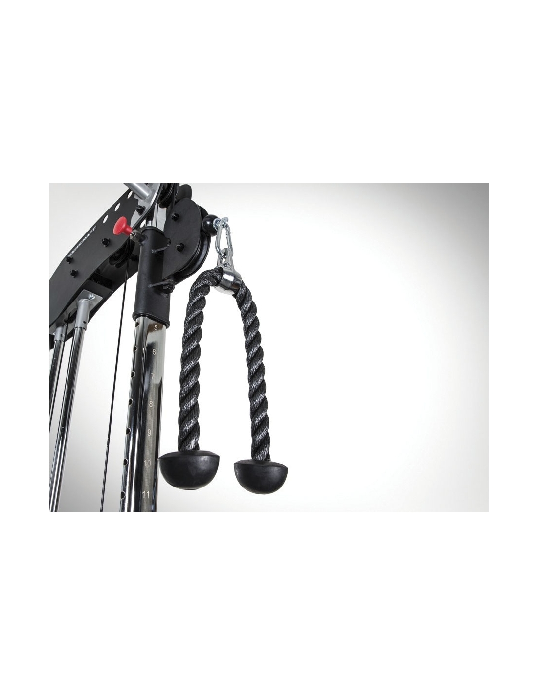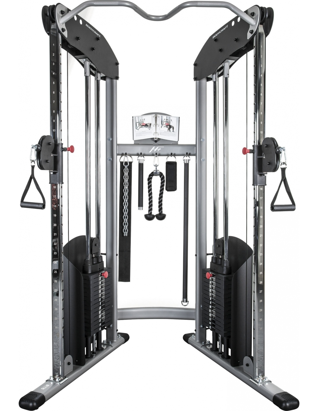 Η διπλή τροχαλία της Bodycraft HFT, είναι κατασκευασμένη με τα κορυφαία υλικά και είναι ιδανική για το personal studio σας, το γυμναστήριο του ξενοδοχείου - βίλας ή ακόμα και για το σπίτι σας. Πολύ όμορφος σχεδιασμός με οβάλ σίδερα, κομμένα με laser cut για απόλυτη ακρίβεια. Το συνολικό βάρος πλακών 180 κιλών θα ικανοποιήσει ακόμα και τους πιο απαιτητικούς. Τα συρματόσχοινα υψηλής αντοχής και οι τροχαλίες από Fiberglass με τα σφραγισμένα ρουλεμάν προσφέρουν την χαρακτηριστική Smooth αίσθηση που έχουν όλα τα προϊόντα της Bodycraft