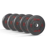 Η σειρά δίσκων ολυμπιακού τύπου AMILA Black R Slim είναι φτιαγμένοι από υψηλής ποιότητας 100% πρωτογενές λάστιχο κανονικής καθαρότητας σε συνδυασμό με ατσάλι. Η επιτρεπόμενη διακύμανση του βάρους είναι +/-1%, δηλαδή σε βάρος 20Kg η αποδεκτή διακύμανση φτάνει τα 200gr. Είναι ιδανικοί για CrossFit, όπου η απόλυτη ακρίβεια στο βάρος δεν είναι το ζητούμενο.