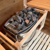 Η Tr4 διαθέτει όλα τα απαραίτητα για άμεση χρήση: κουβά & κουτάλα, θερμόμετρο-υγρόμετρο και 20 kg πέτρες σάουνας για μια ολοκληρωμένη παραδοσιακή εμπειρία.