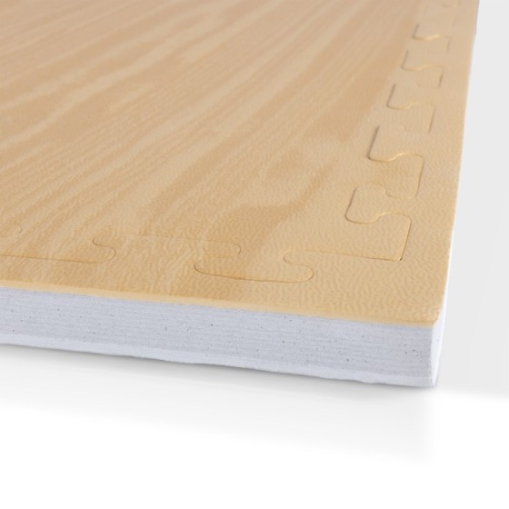 Κατασκευασμένο από πυκνό EVA foam, εξασφαλίζει απορρόφηση κραδασμών, μείωση θορύβου και προστατεύει το δάπεδο και τον εξοπλισμό από φθορές. Η επιφάνεια με όψη ξύλου χαρίζει premium αισθητική, ενώ η εύκολη συναρμολόγησή του το καθιστά ιδανική επιλογή για πολεμικές τέχνες, pilates, functional ή home gyms.