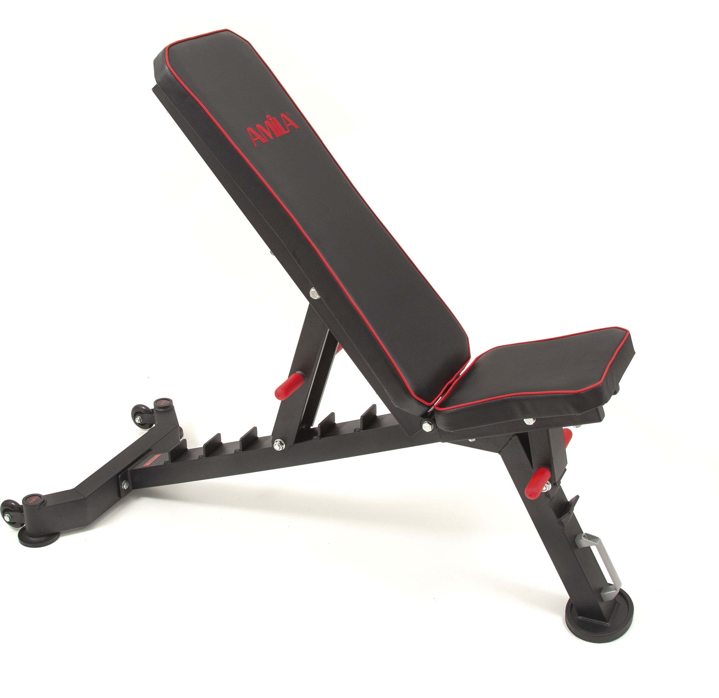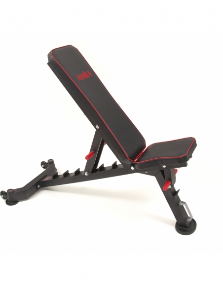 Ο πάγκος πολλαπλών θέσεων Amila 44760 μπορεί να καλύψει χρήστες με μέγιστο βάρος 250 κιλά. Διαθέτει πολύ μαλακό μαξιλάρι για άνετη στηριξη. Το κάθισμα του είναι 500x340x50mm, η πλάτη 800x286x50mm ενω διαθέτει σωλήνα 50x70x1.5mm. Η γωνία μπορεί να ρυθμιστεί σε -20°, 0°, 20°, 35°, 50°, 60°, 80° και οι γωνίες καθίσματος σε 0°, 20°, 35°. Αποτελεί μια καλή και αξιόπιστη λύση για ένα personal studio ή για ένα μικρό γυμναστήριο στο σπίτι.